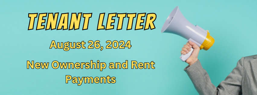 We'd like to welcome Barryview Holdings, LLC as the new owner of the property! To ensure a smooth transition, rent payments starting August 28th will need to be made out to Barryview Holdings, LLC by check or money order.